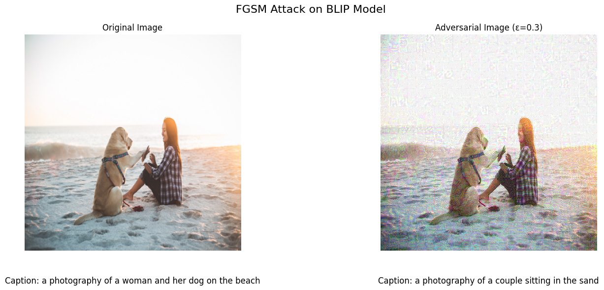axes[1].text(0.5, -0.15, f"Caption: {adversarial_caption}",